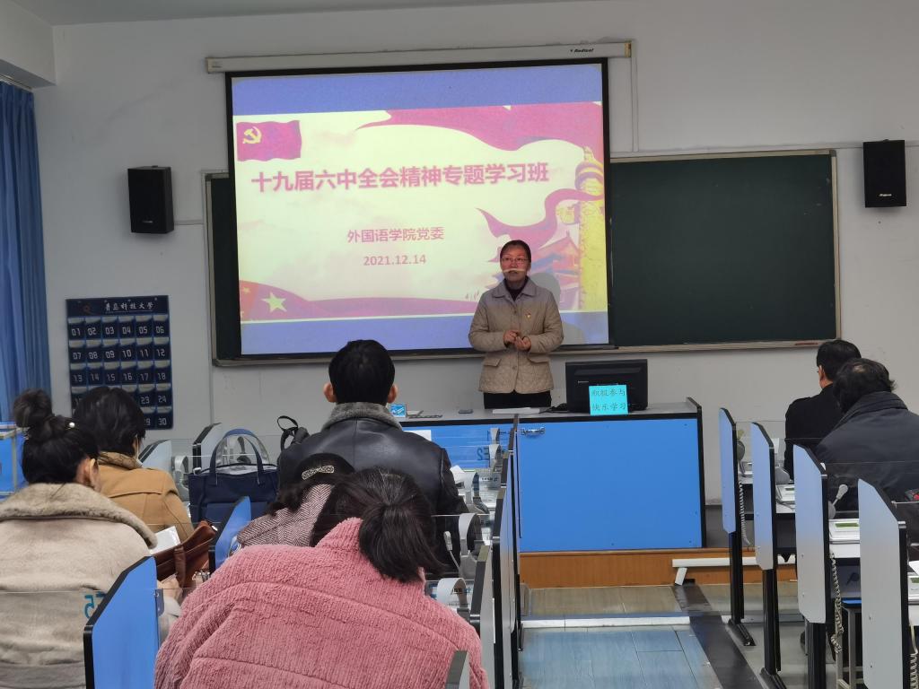 在学院418语音室、408语音室举行了十九届六中全会精神专题学习班(教师班和学生班)的开班仪式,学院全体党员参加。
