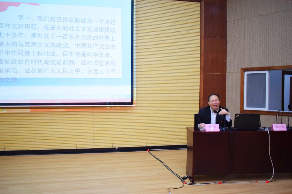 曹胜院长结合百年党史、现实情况和自身经历等方面,用通俗易懂的话语,提纲挈领,深入浅出,从九个方面为全体师生党员全方位解读学习党史的重要意义,阐释了“红色政权来之不易、新中国来之不易、中国特色社会主义来之不易”,和“中国共产党为什么能、马克思主义为什么行、中国特色社会主义为什么好”。他号召广大党员要通过学习党的历史,做到知史爱党、知史爱国,充分发挥党的历史以史鉴今、资政育人的作用,在学习领悟中坚定理想信念,在奋发有为中践行初心使命。