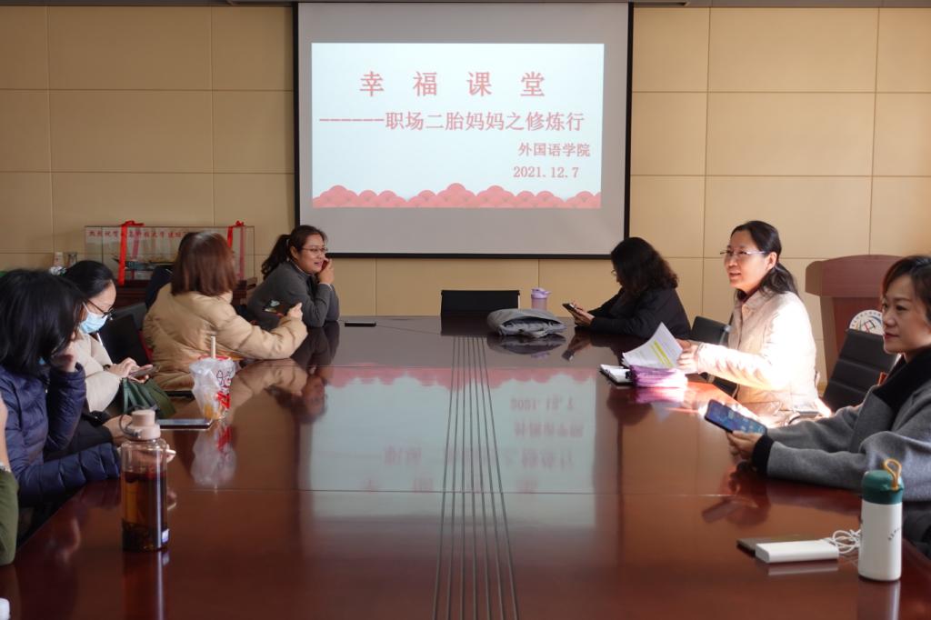 “‘幸福课堂’——职场二胎妈妈之修炼行”在学院517会议室举行。本次活动是学院“幸福课堂”专门为学院育有二孩的女教职工们举办的专场活动,由学院党委书记曲斌艳主持,学院育有二孩的女教师们参加。