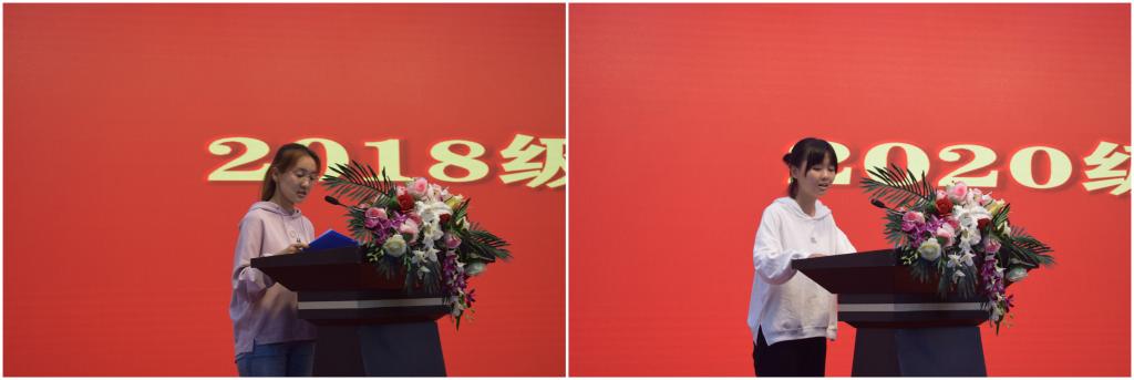 高年级学生代表王玉婕分享了自己的学习经验,在大学生活中要明确目标,坚持学习,不断提高自身能力,以饱满的精神状态和严谨的学习态度度过大学生活。2020级新生代表姚昭仪同学代表新生做出表态,表明了明确的目标和坚定的志向。
