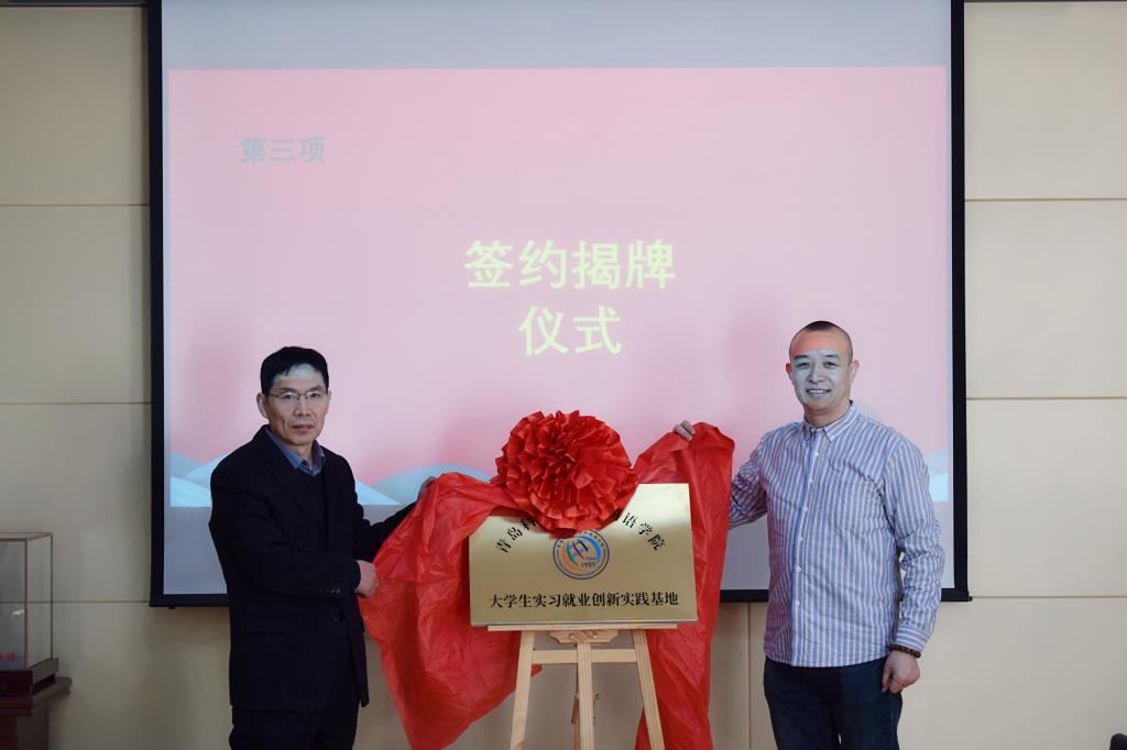 院长尹洪山、副院长康宁,青岛语都教育科技有限公司董事长刘焕强等出席仪式。尹洪山、刘焕强分别代表学院和企业签署了共建协议,共同为实习基地揭牌。仪式由动漫网站