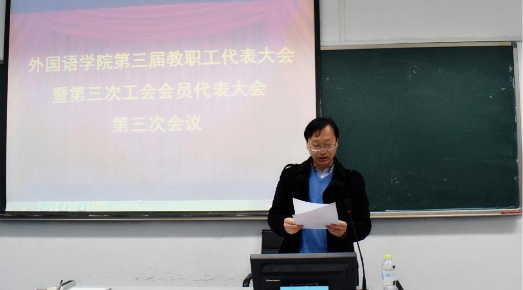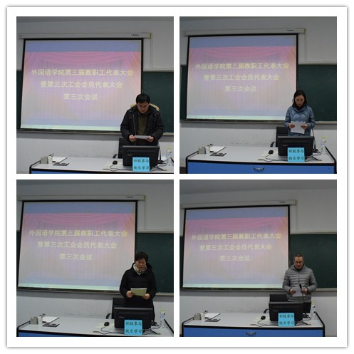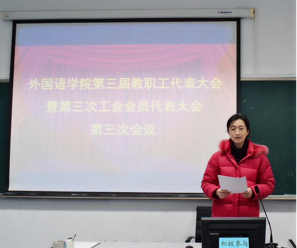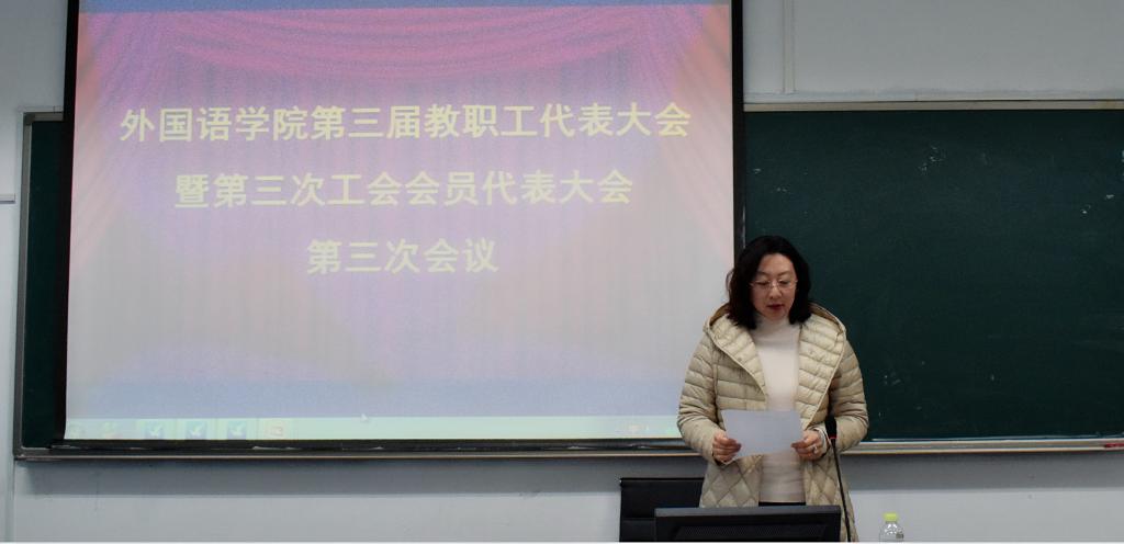 第三届教职工代表大会暨第三次工会会员代表大会第三次会议在418语音室召开,会议由学院党委副书记兼副院长王晓娜主持。