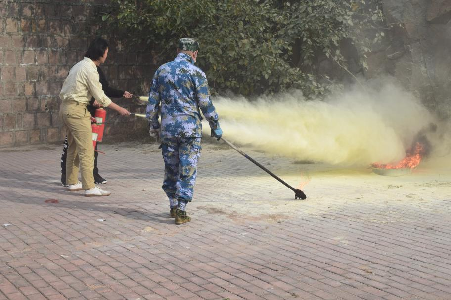 院长尹洪山为即将开展的消防演练致辞,宣布消防演练正式开始。安全保卫科赵淑东老师向参演学生介绍完善、系统的消防知识,用通俗易懂的语言向同学们阐述了火灾的危险性,深刻剖析了火灾发生的原因和预防措施。在北苑餐厅停车场,安全保卫科余全波老师为同学们演示灭火器使用维护方法及注意事项,同学们亲身体验了用干粉灭火器灭火的操作,正确、快速地完成了灭火过程。