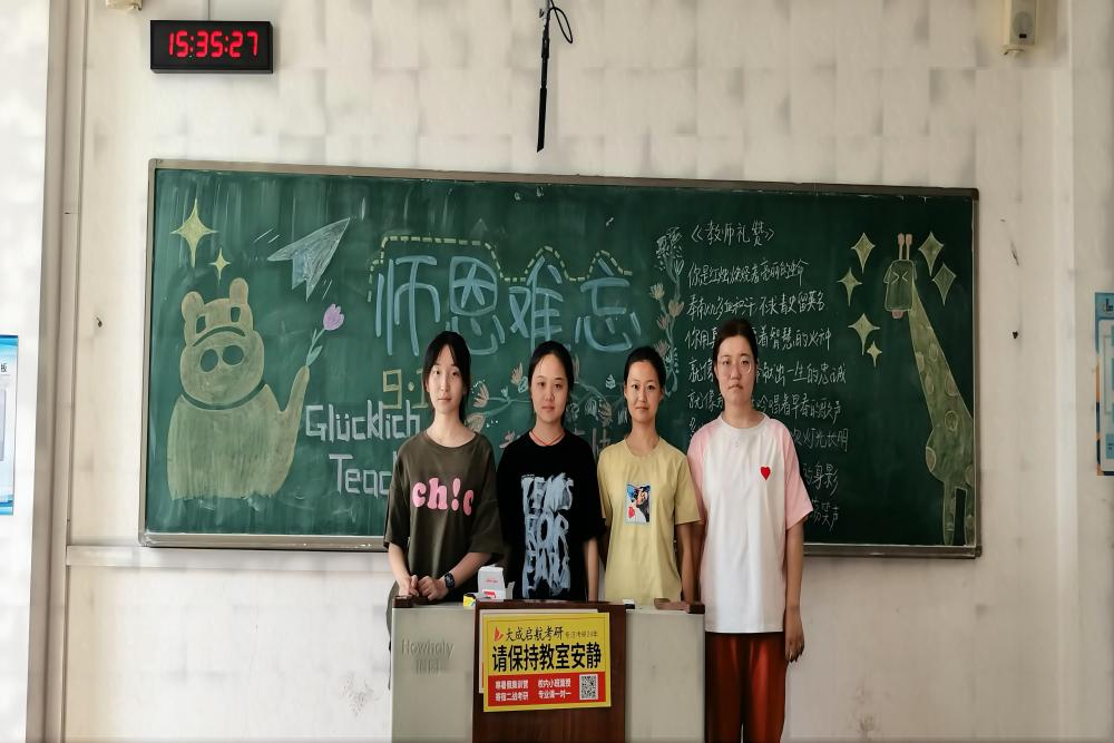 一堂平常的专业课因为一声“老师节日快乐”变得与众不同。学院组织学生们在课堂上举行“感恩老师、庆祝教师节”的仪式,营造教师节氛围,教育学生尊师爱师。学生们利用休息时间,在上课前绘制教师节主题板报,定格温暖瞬间。学生们在课堂上用起立齐声祝福的方式表达对教师的真挚祝福。