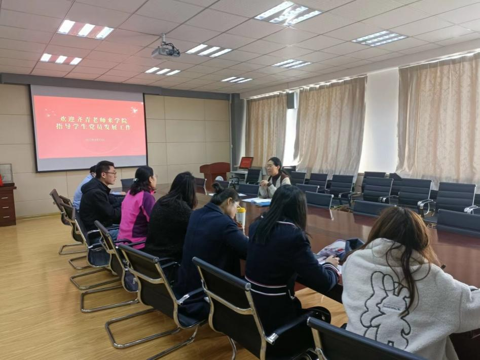 邀请学校党委组织部副处级组织员齐青在517会议室开展党员发展工作实务培训。学院党委书记曲斌艳、党委副书记兼副院长刘尧、全体辅导员等参加培训。