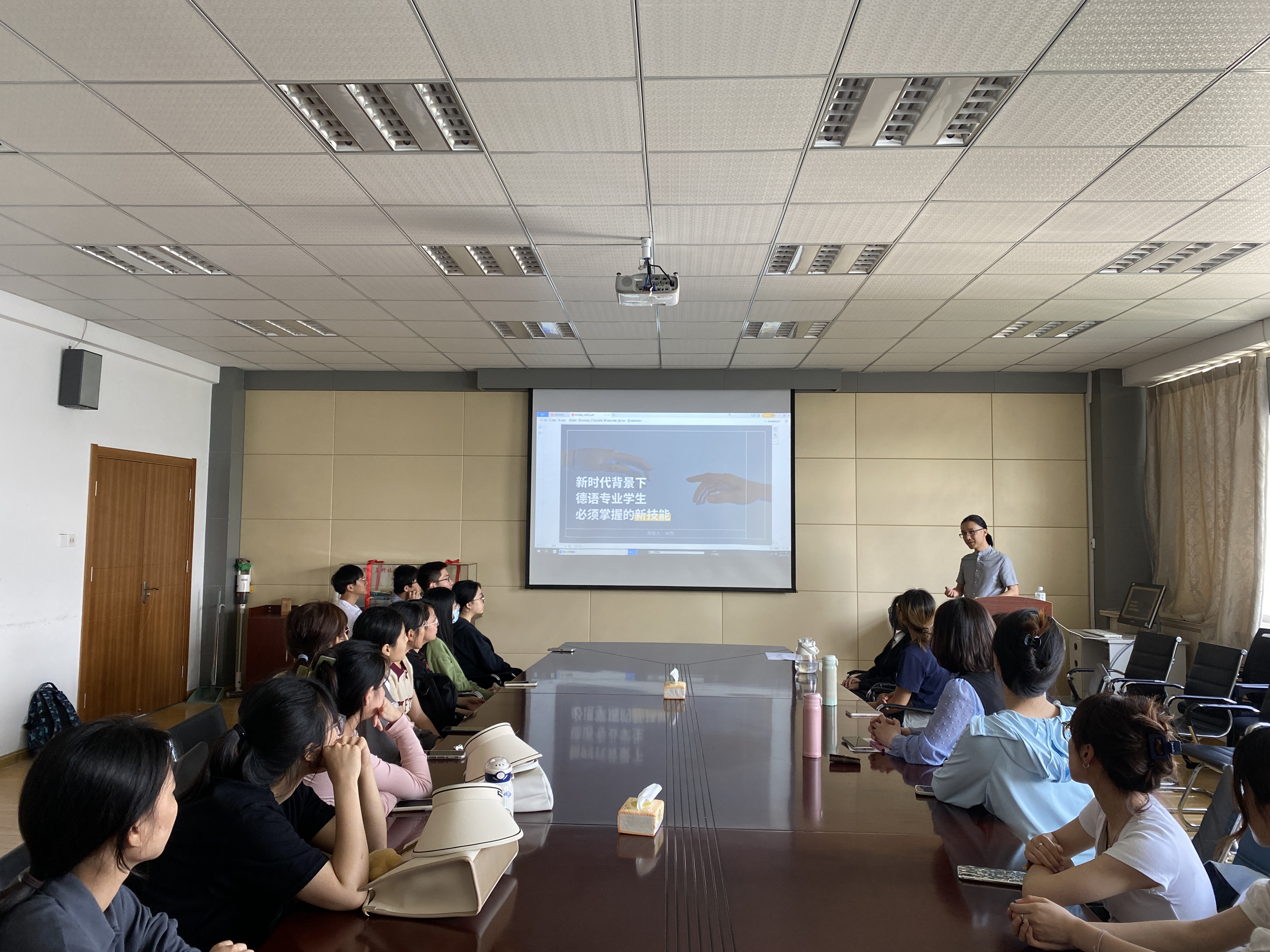 2023年5月16日下午,我校德语专业2009届优秀毕业生李治(网名:米西,知名德语在线教育品牌“米德在线”创始人)返回母校与德语系的学生围绕着“新时代背景下德语专业学生须掌握的新技能”展开了一场别开生面的座谈。李治指出,人工智能的迅猛发展让当代大学生面临着更为严峻的就业挑战。对于德语学生来说,应该重视人工智能技术对于自身学习、就业和创新的影响。AI技术的浪潮中,卓越的求知能力、学习能力、审美能力、实践能力是我们在职场上找到立足之地必须具备的技能。鼓励学生用好社交媒体、主流媒体软件来打造我们外语人自己的简历和名片,米德在线也愿意为同学们提供实习实训的机会。