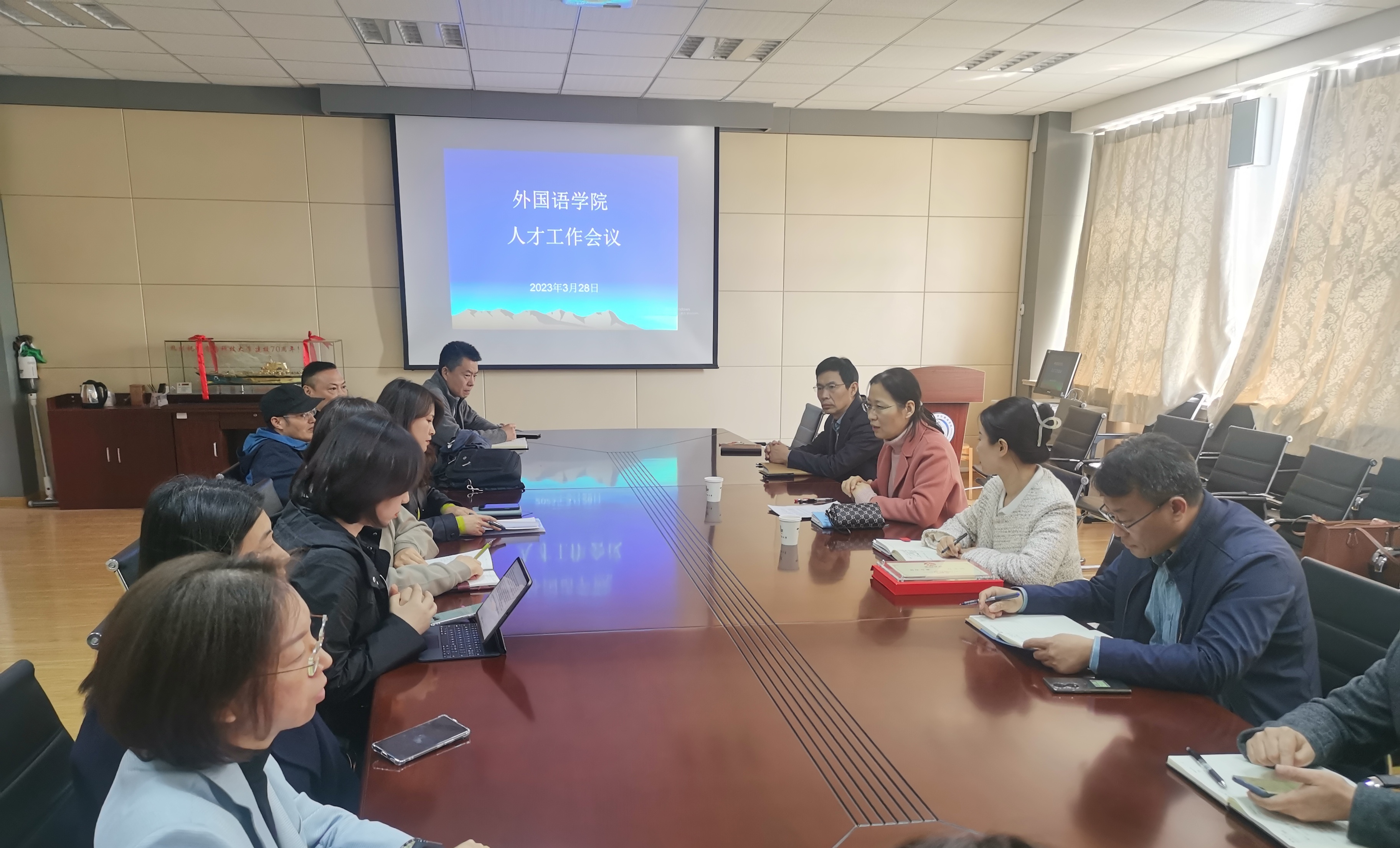 在517会议室召开人才工作专题会议。人事处副处长李真、人才服务科科长钟鸣出席会议。学院党政班子、学术委员会成员、党支部书记、系部主任、青年博士等参加会议。会议由学院党委书记曲斌艳主持。