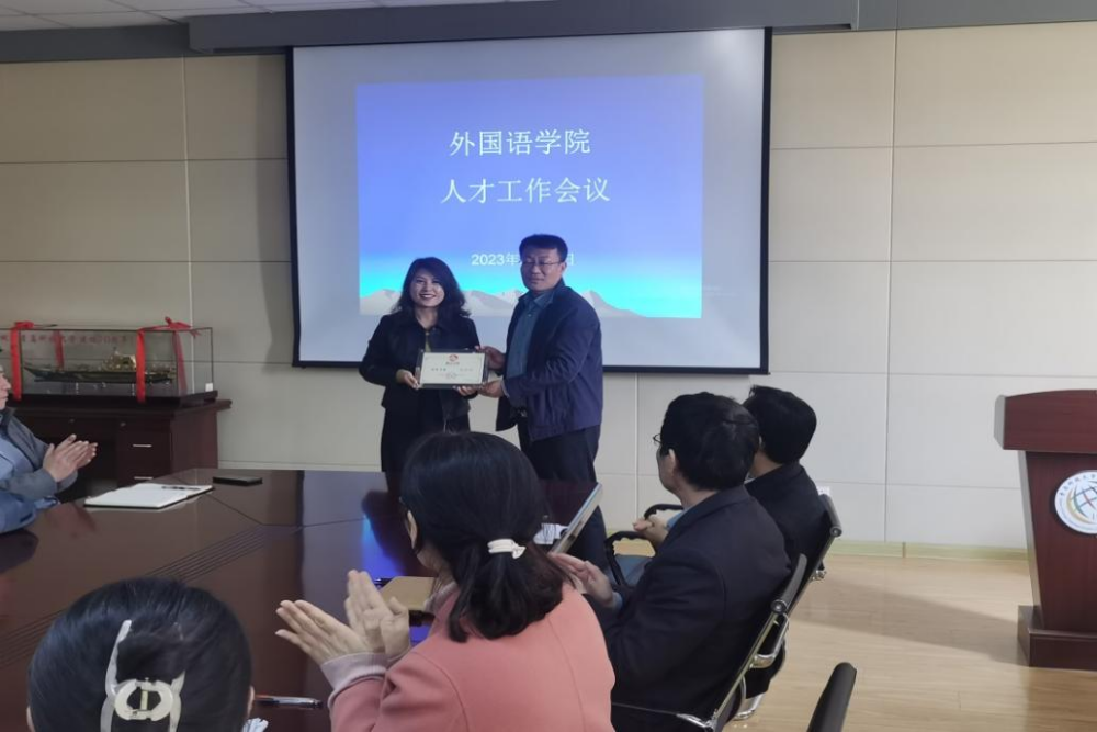 贯彻落实学校“人才强校战略”,以团队建设为依托,加大对学院师资队伍的培育,学院“一带一路与中西文化交流研究中心”负责人赵洪娟教授获批山东省泰山学者青年专家,实现了学校人文社科领域省级人才的突破。会上,人事处李真副处长为赵洪娟教授颁发了人才证书,并对学院人才工作给予充分的肯定。