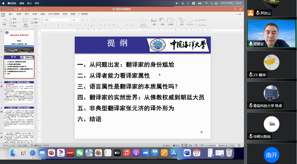 博士生导师贺爱军教授应学院邀请,在线做了题为《翻译家的本质属性探究》的学术讲座。讲座由院长尹洪山主持,学院师生及省内外学者300余人聆听了讲座。