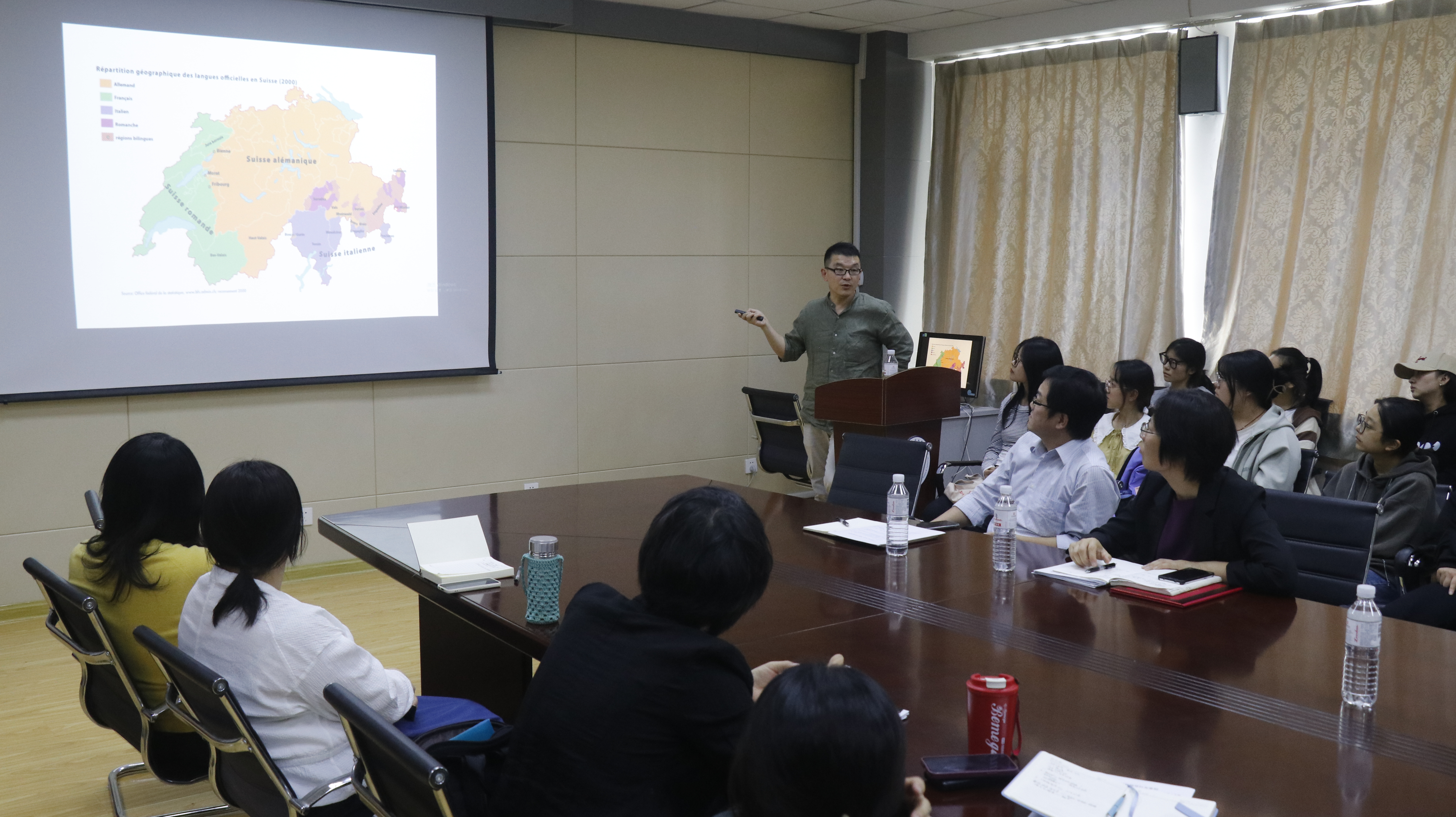 教师申永杰进行了“侨星论坛”的专题讲座《驻日内瓦代表团见闻》。申老师从日内瓦的地理历史、驻日内瓦的国际组织、日内瓦代表团工作见闻、瑞士风土人情等方面介绍了自己作为外交部派驻日内瓦代表团成员的经历、见闻,并分享了自己的驻外感悟,号召同学们打好扎实的语言基本功、拥有多种语言能力、勇敢走向国际舞台。