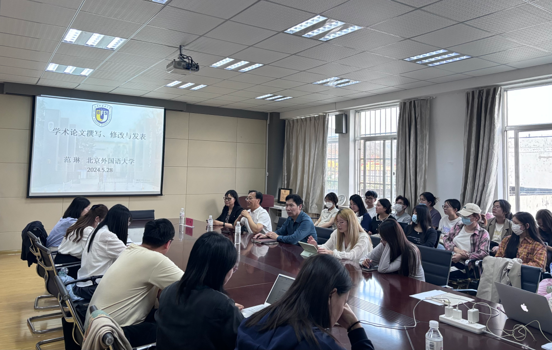 5月28日晚,学院邀请北京外国语大学博士生导师范琳教授就外国语言文学学科发展进行专题讲座。讲座由副院长康宁主持,英语语言文学、俄语语言文学和外国语言学及应用语言学三个学科骨干教师以及全体研究生参加了此次讲座。