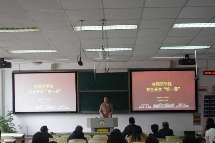 安全开学“第一课”在弘毅楼B102举行,学院班子成员、各系部主任、党支部书记以及全体教职工参加会议,党委书记曲斌艳主持会议。