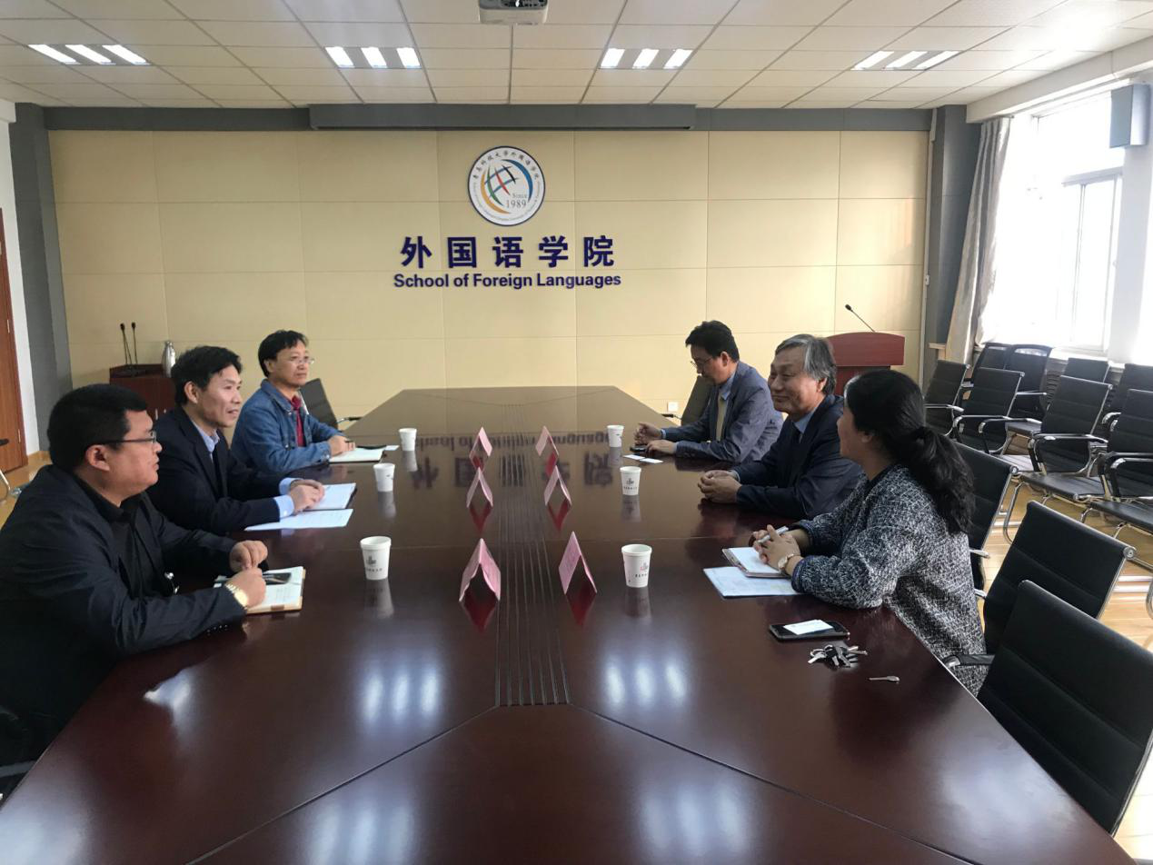 517会议室接待了来访客人,韩语系部分教师参加了此次交流活动。