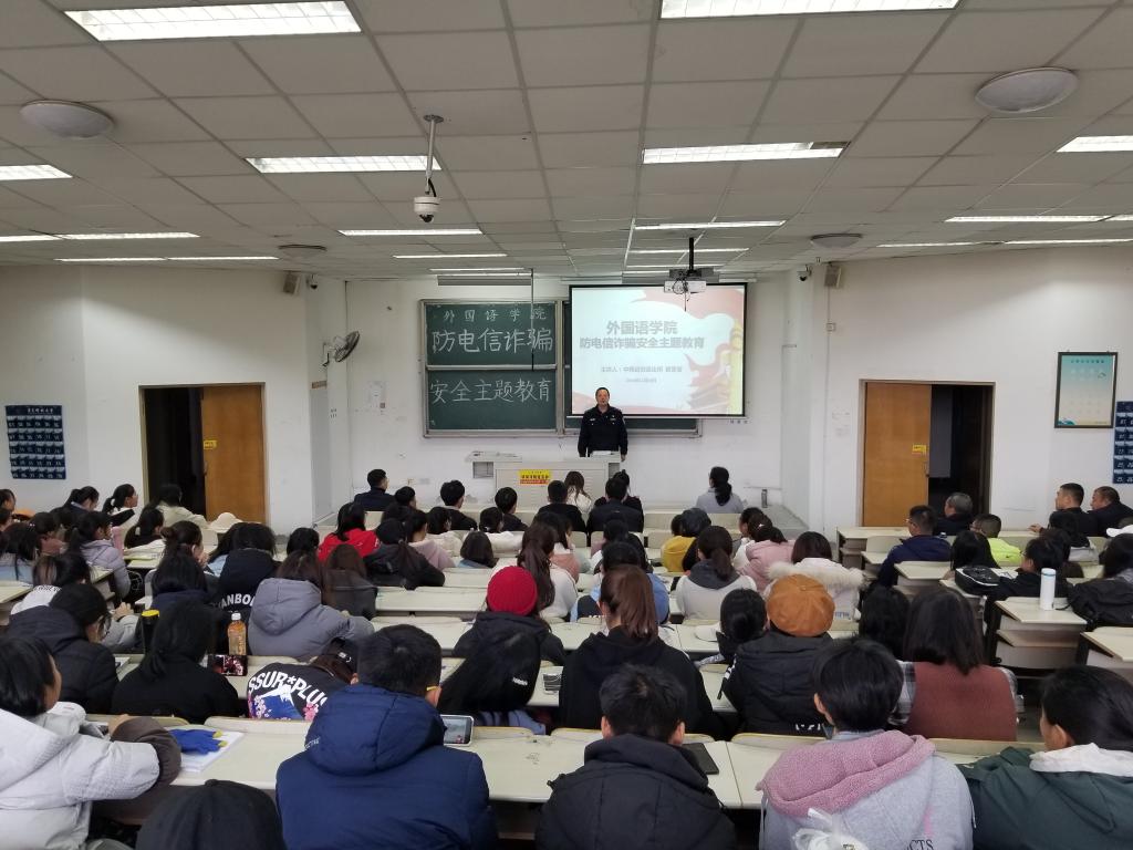 于弘毅楼E202举办防电信诈骗安全教育专题讲座。中韩边防派出所崔睿警官担任主讲人,动漫网站