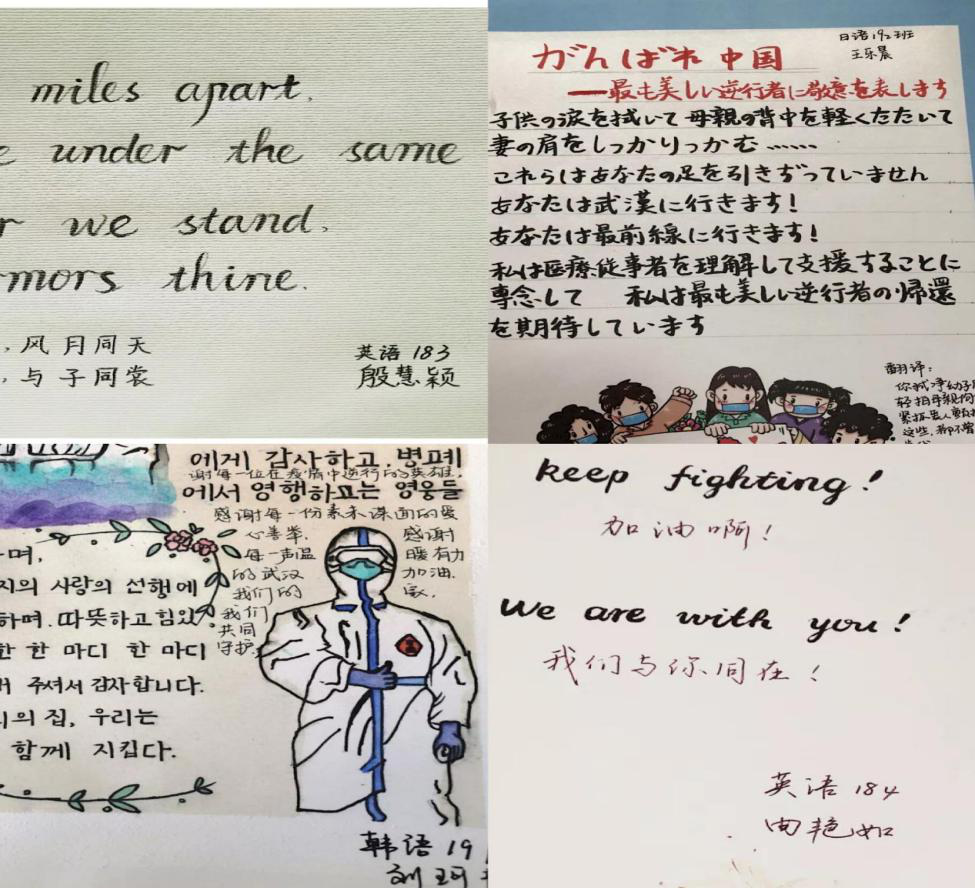 发起了“抗疫之战,‘语’你在一起”书写活动,为中国加油,向奋战在一线的最美逆行者致敬。