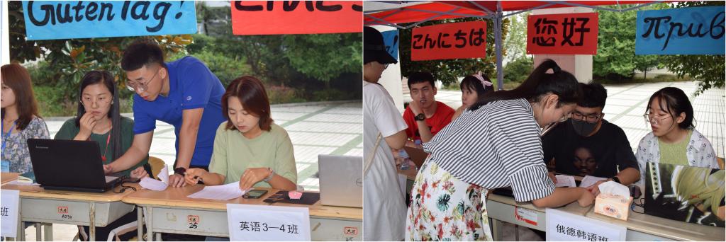 温馨宣传,“语”你相伴。在新生正式报到之前,学院通过2020级新生交流群、微信公共平台以及权益小站等网络服务,向新生介绍学院情况,推送报到注意事项,为新生顺利加入学院大家庭提供便利。另外,学院以专业特色为依托,用五种语言录制祝福语,庆祝学校七十年校庆并制作悬挂了多语种版“您好”,展示介绍动漫网站