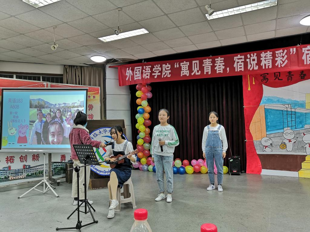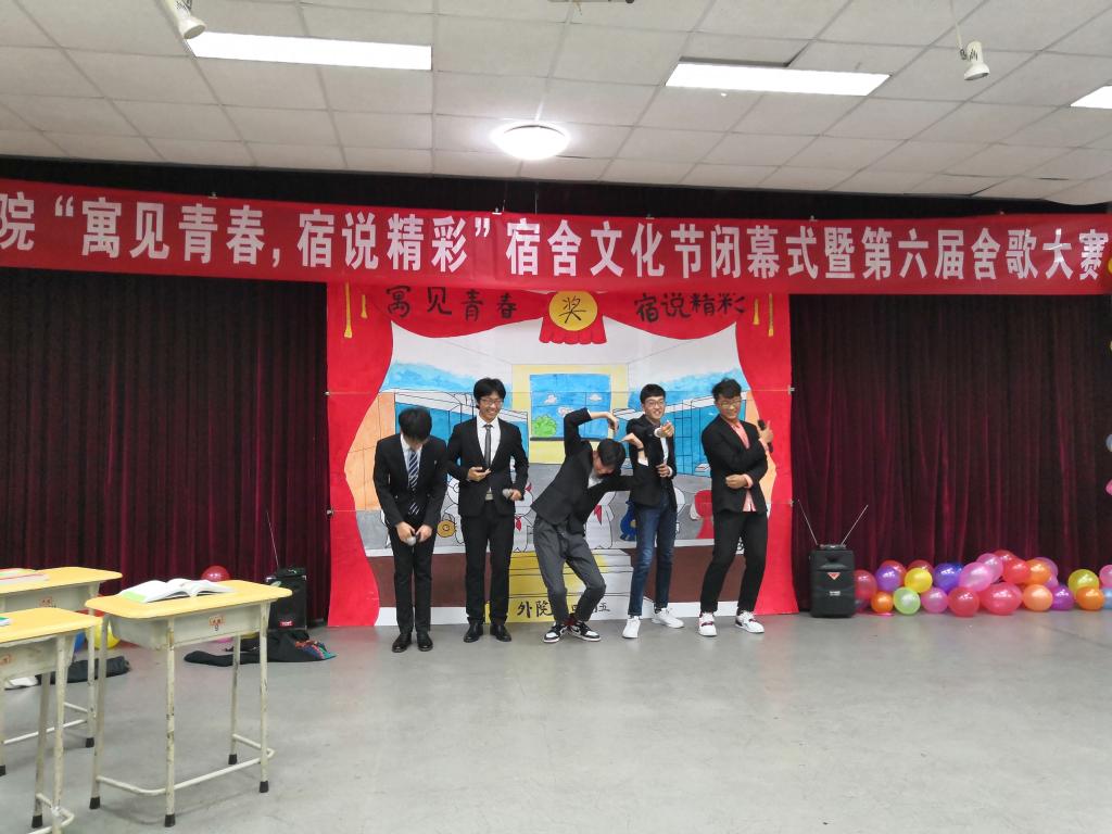 随后,舍歌大赛在一段优美的舞蹈中拉开帷幕。舞台上,温婉美妙的歌声与动感的舞蹈不停切换,赢得了观众们的阵阵掌声。参赛曲目以“弘扬主旋律,创建温馨宿舍”为主题,《晴天》、《CITY OF STARs》等歌曲的演绎方式多种多样,全面展现了外院学子团结、向上的精神面貌,表达了同学们以长征精神为引领,自强不息,创建文明宿舍的决心。同学们歌声嘹亮,比赛现场精彩纷呈,经过激烈的角逐,A509宿舍最终获得本次比赛的冠军。