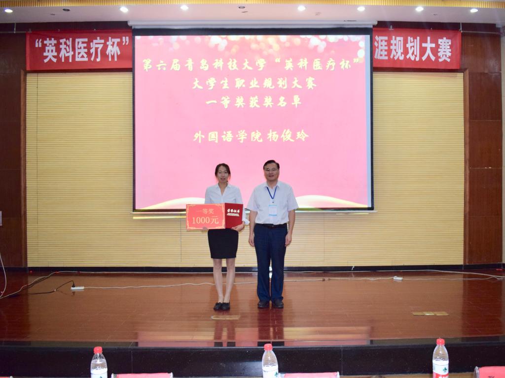 党总支副书记宋飞参加了大赛颁奖典礼。青岛华昇和智业管理咨询有限公司总经理史平,博蓄企业管理(上海)有限责任公司总经理王英浩,猫头鹰求职创始人、山东省就业促进会副秘书长张凯元,青岛荣置地顾问有限公司人力行政高级经理张魏魏,青岛蓝海人力资源服务有限公司CEO何鲁峰5位校外专家担任评委。