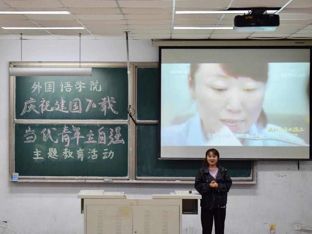 于弘毅楼E106开展“庆祝中华人民共和国成立70载,当代青年立自强”主题教育活动,同学们一起观看了纪录片《我们走在大路上》,在追忆历史、歌颂现在、展望未来中,弘扬主旋律,唱响新时代,争做圆梦人。