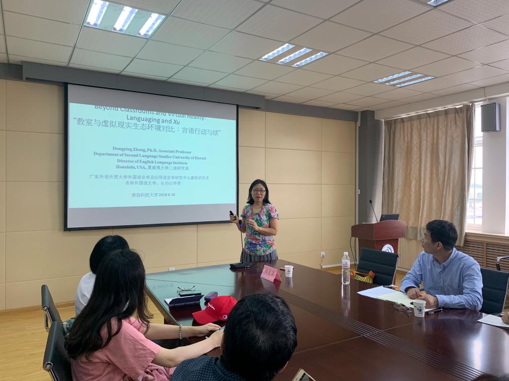 邀请,在外语楼517会议室做了题为《教室与虚拟现实生态环境对比:言语行动与续》的报告。报告会由院长尹洪山教授主持,院长助理刘靖及部分教师和研究生参加了报告会。