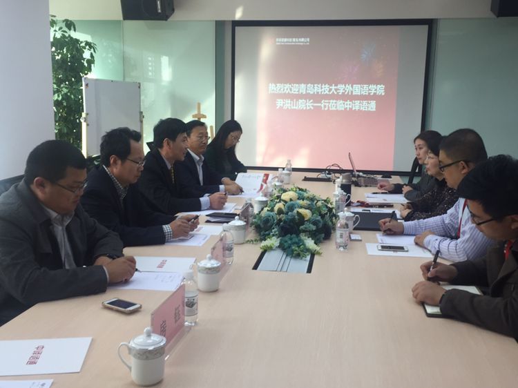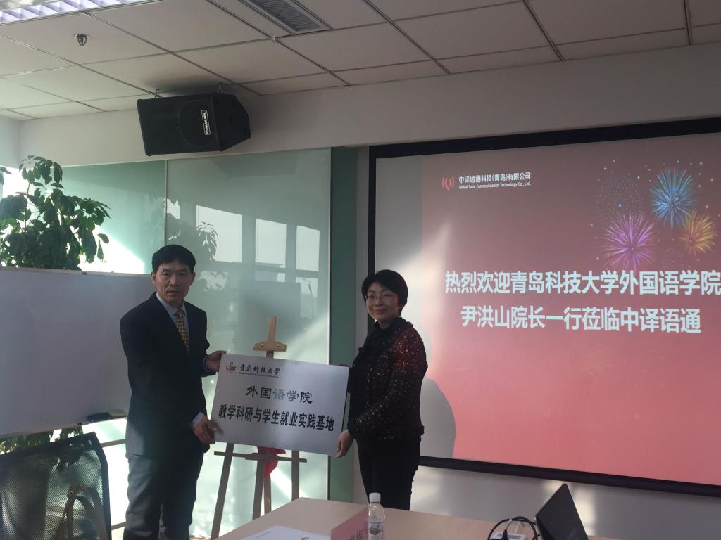 近年的发展现状,所取得的成绩、经验和今后采取的措施与努力方向,并指出教学科研与学生就业实践基地的建立体现了企业对学校教育事业的支持和社会责任的担当,希望以后在更多的方面加强与企业间的合作。同时学校也看到了现阶段学校教育和企业实际应用间的差距,今后将加强与企业间的合作,争取学校和企业的无缝对接。中译语通科技(青岛)有限公司副总经理张慧介绍了公司的发展情况,随着国家的不断发展和“一带一路”倡议的实施,企业对外语人才的需求越来越多,但同时随着新技术的不断应用,对翻译人员的要求越来越高,公司将为学校提供实习平台,为学生的发展、为学校的合作做出更大的贡献。