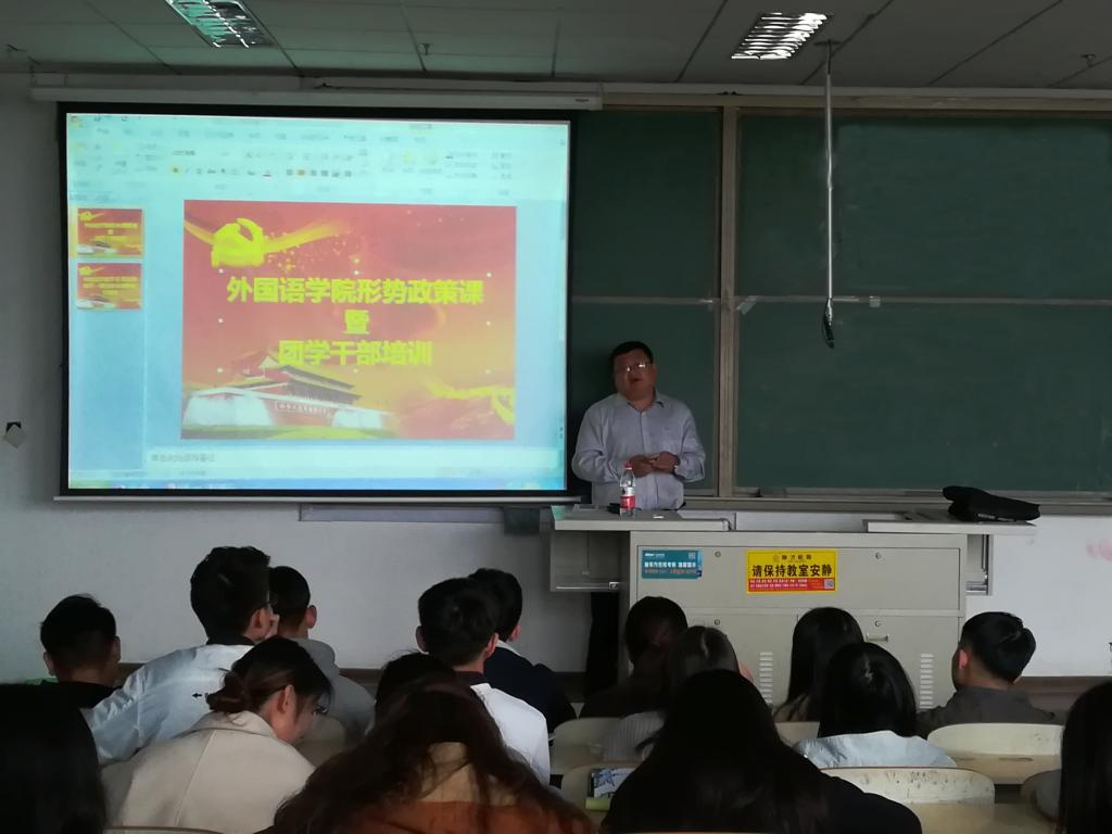 11月7日下午,宣讲团在明德342教室正式开讲,党总支副书记兼副院长宋飞为学院全体辅导员、全体学生干部、学生党员以及学生代表作十九大精神主题报告。