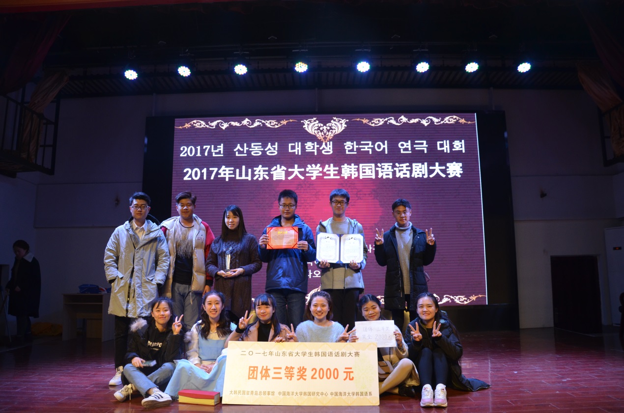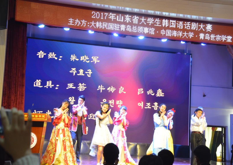 2017年11月25日上午,由大韩民国驻青岛总领事馆、中国海洋大学和青岛世宗学堂共同主办的“2017年山东省大学生韩国语话剧大赛”在中国海洋大学文新学院乐海堂拉开帷幕。中国海洋大学李华军副校长、大韩民国驻青岛总领事馆李寿尊总领事等出席大赛开幕式。
