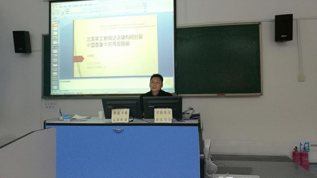 12月20日下午,多伦多大学博士后研究员吴建清博士应邀来我校为广大师生作了题为“北美英文新闻话语建构短时窗中国意象中的等级隐喻”的学术报告。报告由动漫网站