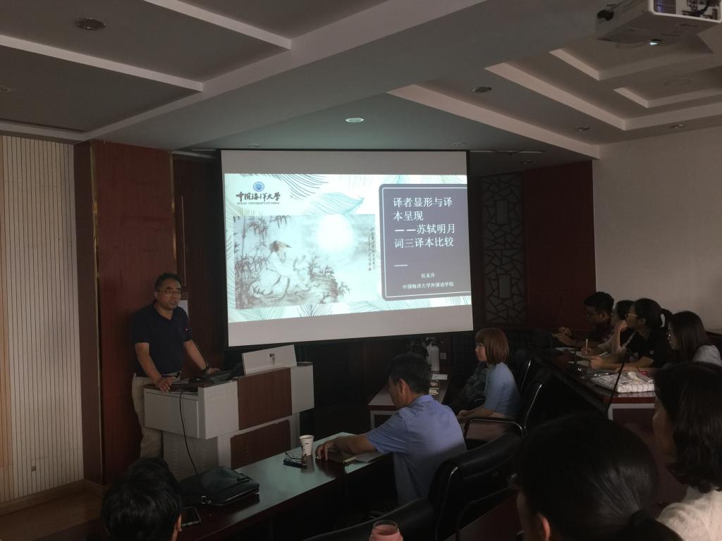 主办,邀请中国海洋大学博士生导师任东升教授为师生做了一场“译者显形与译本呈现”的报告。报告会由院长尹洪山主持,副院长康宁及部分师生参加了报告会。