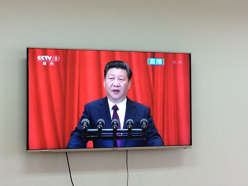 办公室党支部组织支部成员及小语种支部部分成员在学院楼3006室收看大会实况直播并讨论学习讲话精神。