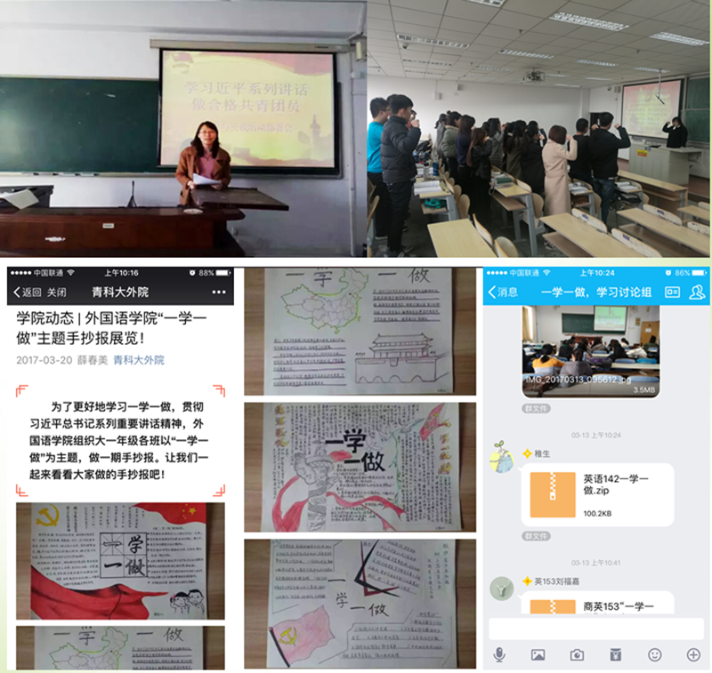 为深入开展“一学一做”教育实践活动,贯彻落实刘兴云书记在“十三五”规划和综合改革部署动员大会讲话中提出的建设“五有”高水平大学的讲话精神,外院分团委通过“一学一做”系列主题团日活动的开展,启动了团学工作综合提升工程之导航行动,发出了做一个“人美、心美、学习美、文体美、志愿服务美”充满正能量的‘五美’外院人的号召,引领青年团员树立正确的人生观、价值观,做一名积极向上的合格团员。院学生会组织开展了“学系列讲话精神,做‘五美’外院人”手抄报大赛,通过比赛让同学们了解开展“一学一做”实践教育活动的重要意义,帮助青年团员数理正确的人生观价值观;英语161、162班举办了“学系列讲话,做合格共青团员”主题团日活动,德语141班、韩语141班举办了“奋进中彰显青春” 主题团日活动,俄语151举办了“传承科大精神,做积极向上科大人”主题团日等。通过这些主题团日,汲取了精神营养,坚定了理想信念,也强化了青年学生的时代责任感。