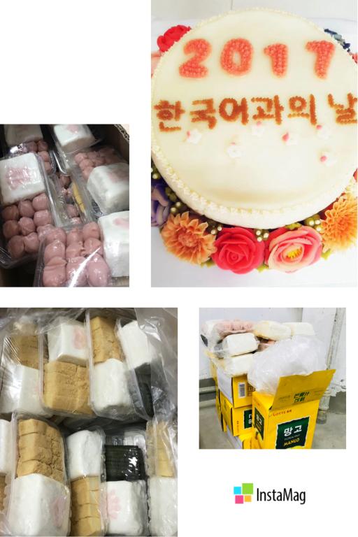活动第二部分,同学们纷纷交上满意的答卷之后,便是轻松的休息时间。同学们一边品尝着韩国的传统糕点,一边观看着关于韩字及韩国文化的纪录片。当然,于此同时,老师们也在紧张地进行着阅卷工作。