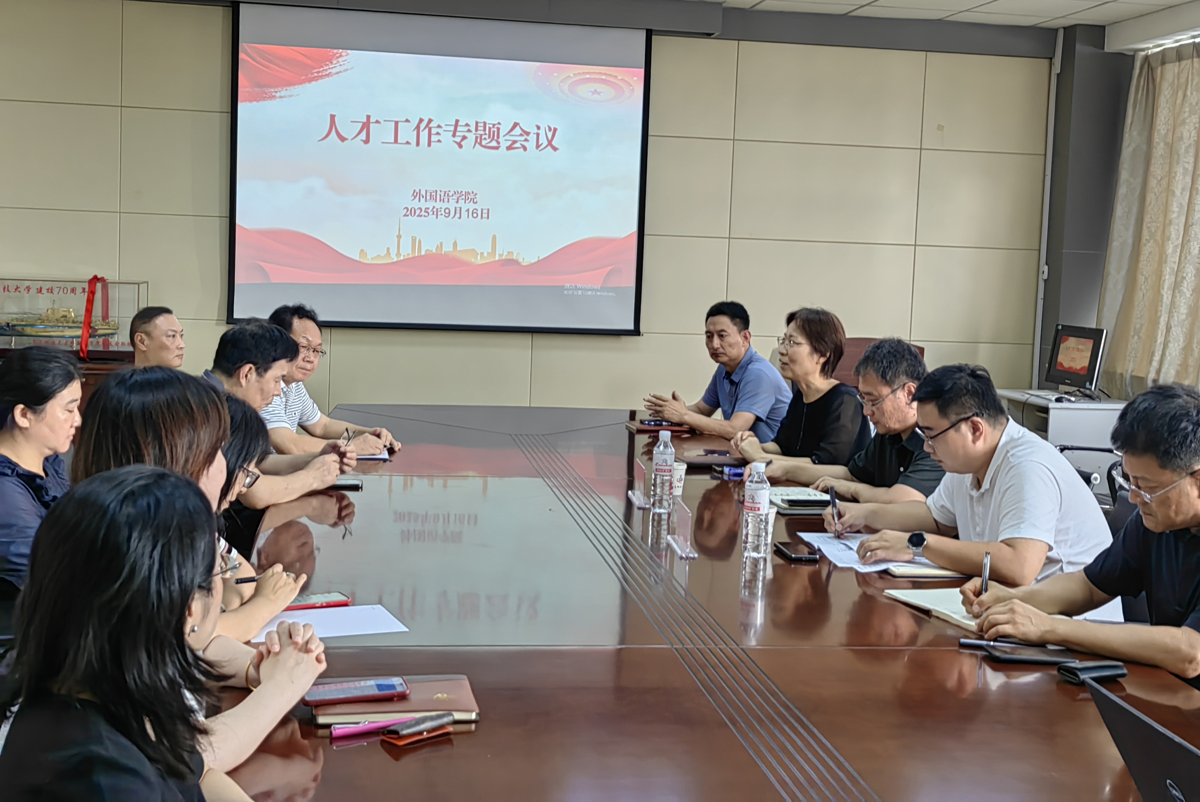 在学院517会议室召开人才工作专题会议。学校人事处副处长雷剑、人才服务科科长张钊,学院领导班子成员、学院发展委员会、学术委员会成员、党支部书记、系部主任、骨干教师、青年博士参加会议。会议由学院党委书记曲斌艳主持。