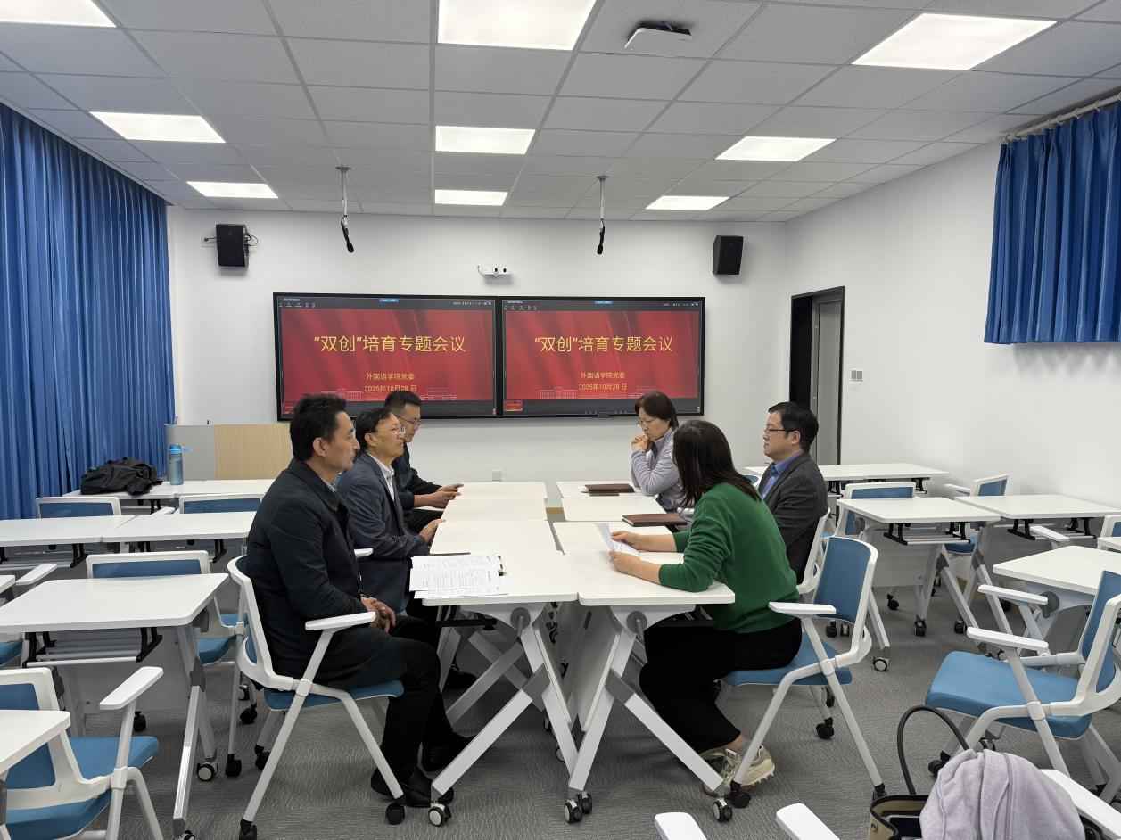 在学院413语音室召开“双创”培育专题会议。学院党委书记曲斌艳、党委委员及英语系党支部书记王丽出席会议,共同为学院“双创”工作及党建业务融合发展定方向、谋思路、商举措。