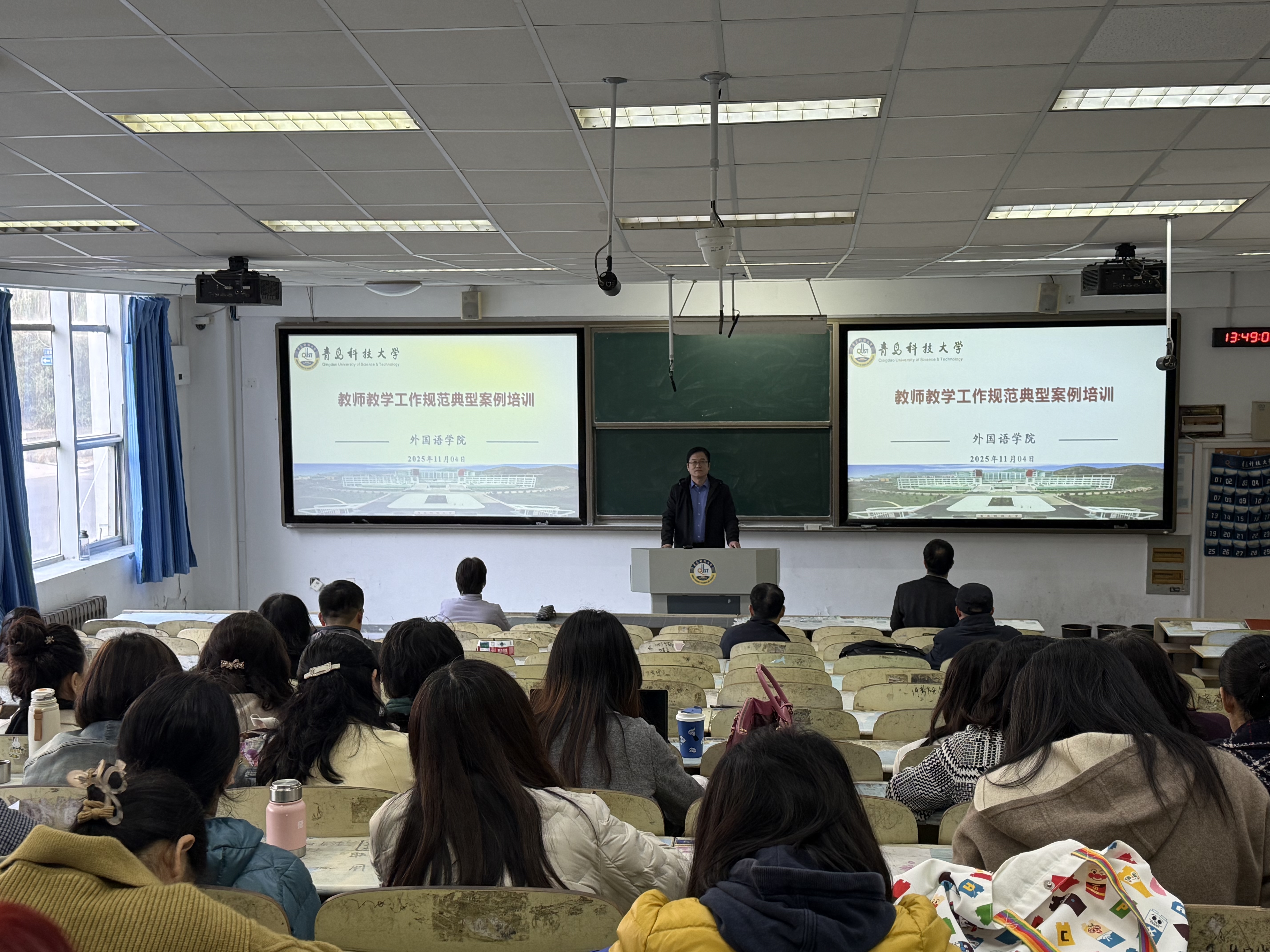 教师教学工作规范(2022修订)》的具体条款,进行了深入浅出的典型案例培训。他选取了教学准备、课堂管理、考核评价、师德师风等关键环节中具有代表性的正反案例,进行了生动详实的剖析与解读,引导教师们明底线、知准则、强规范。培训内容紧密联系外语教学实际,针对性、指导性强,为教师们准确理解、自觉执行教学规范提供了清晰指引。