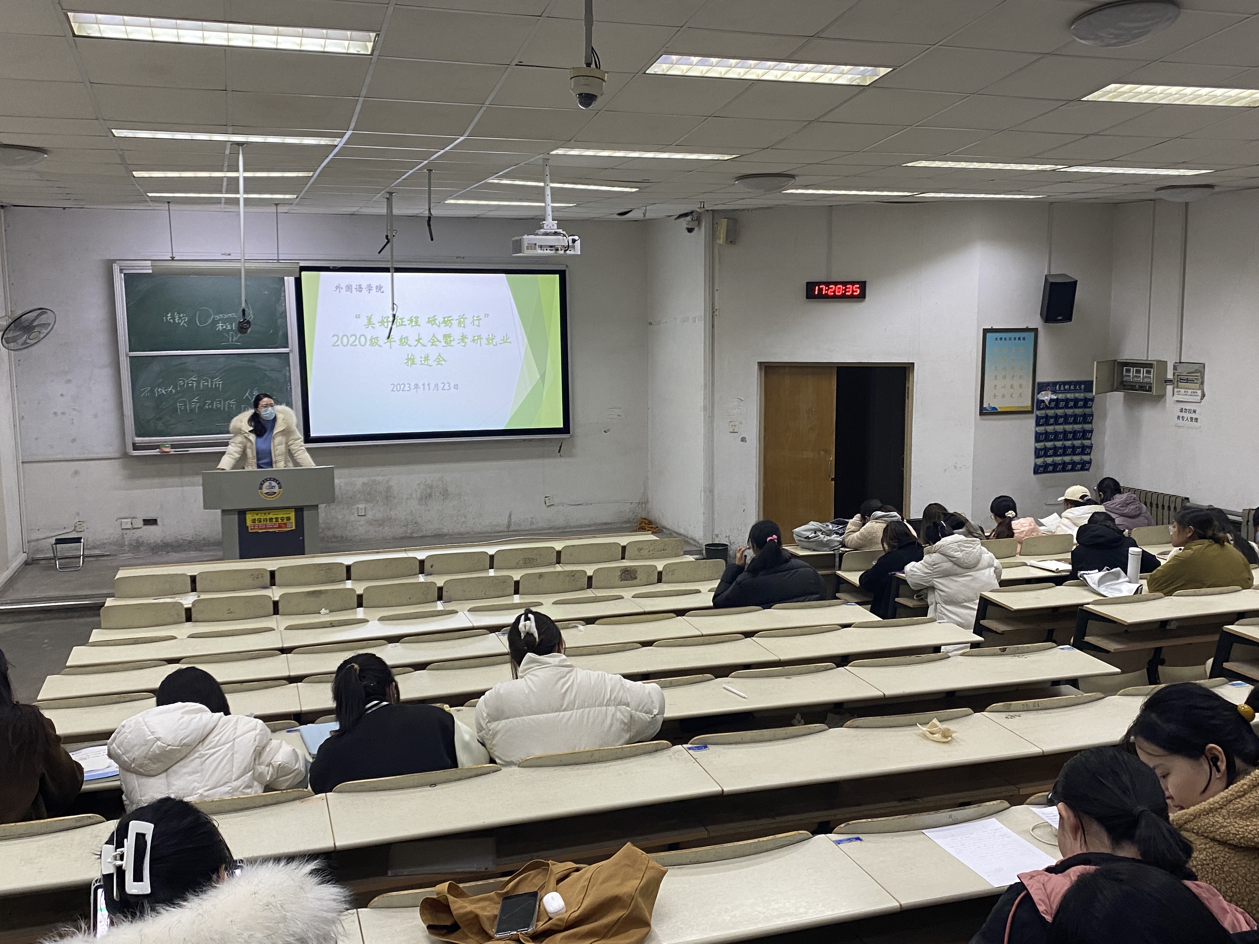 于11月23日在弘毅楼E区102召开“美好征程砥砺前行”2020级年级大会暨考研就业推进会,辅导员刘妍君老师主持本次大会。