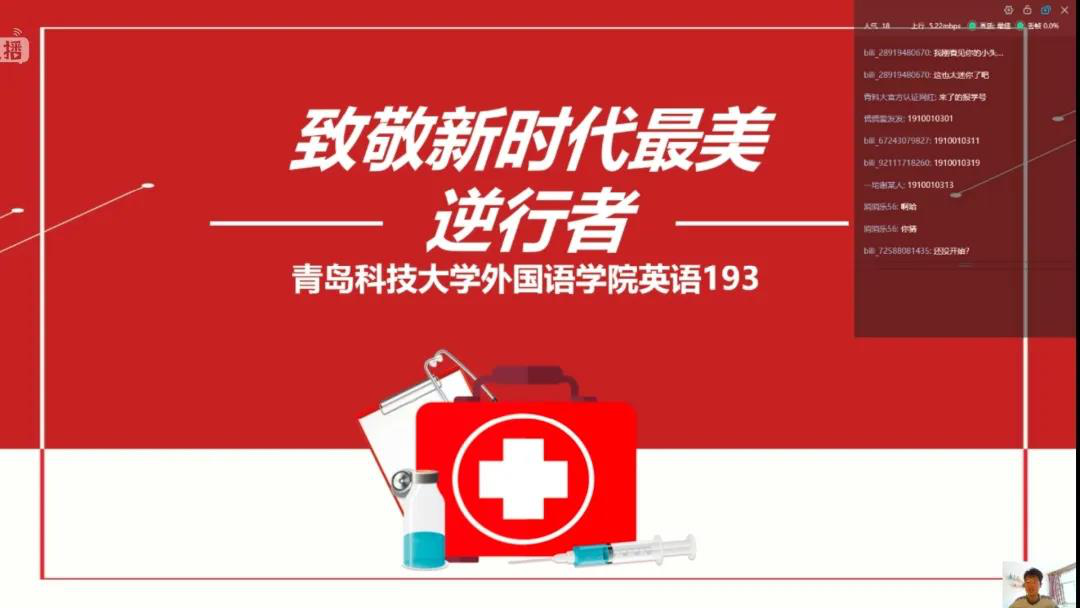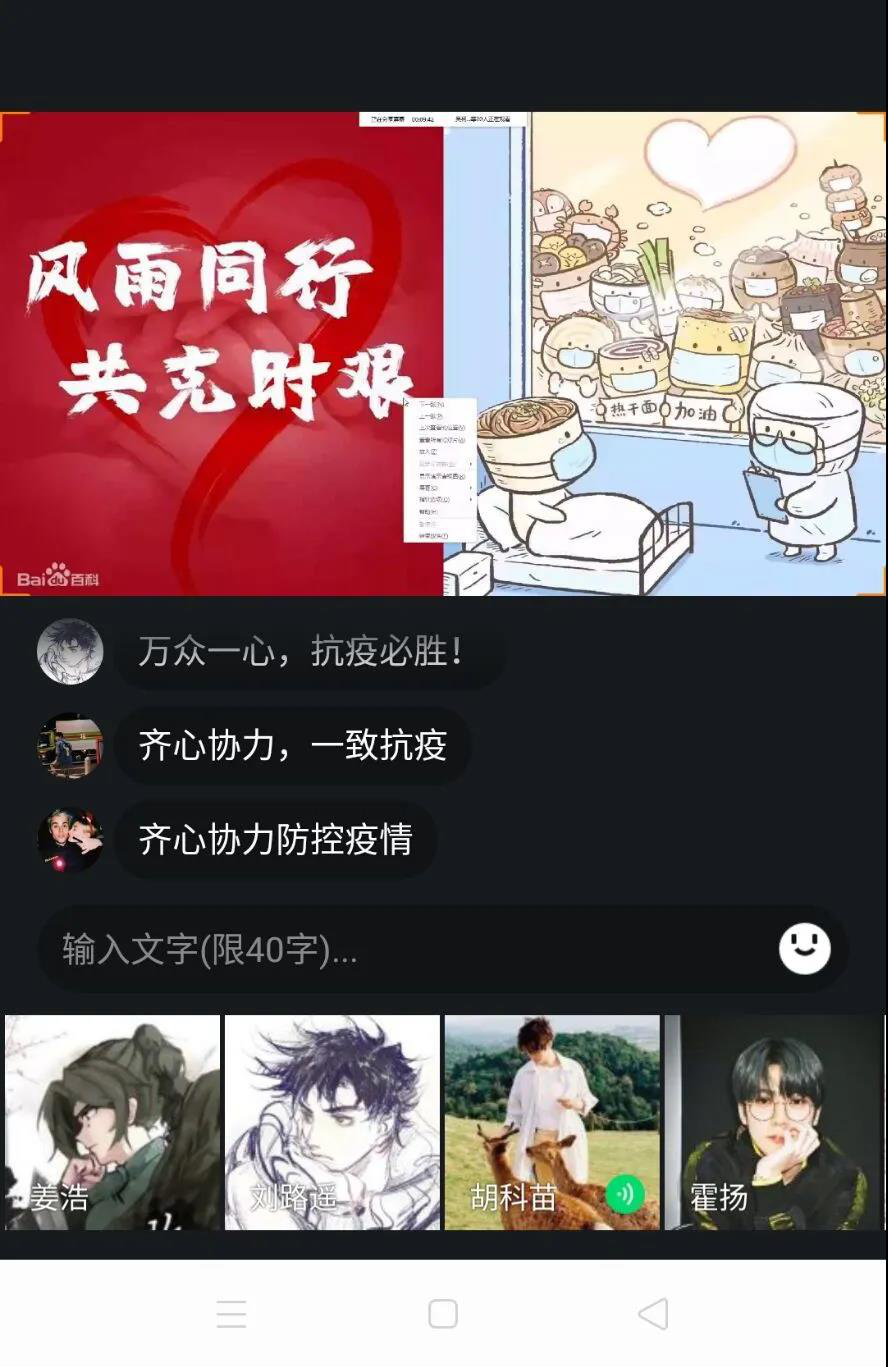 开展了以“致敬新时代最美逆行人”为主题的线上团课教育,各班团支部选出主讲人为同学们详细介绍了新型冠状病毒,并进行了以预防、控制新冠病毒以及其诊断程序为核心的知识培训活动。主讲人还提到“一省包一市”的支援方案,山东在此次疫情中提供物资、蔬菜并抽调多批次医护人员前往武汉,体现出“一方有难,八方支援”的精神。并援引钟南山院士、李文亮医生以及李兰娟教授的先进事例,向奋斗在一线的战士们致敬!