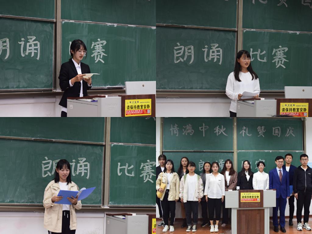 于2020年10月3日举办“情满中秋,礼赞国庆”朗诵比赛。同学们激情洋溢,用婉转动人又或激昂深沉的语调诵读经典诗歌,抒发内心的喜悦和自豪,从苏轼古典韵味十足的“明月几时有,把酒问青天”,到王怀让深情呐喊出的“我骄傲,我是中国人”,再到赵志敏铿锵有力的“疫情就是命令,防控就是责任”,此次活动引导学生们认真中华优秀传统文化的思想精华和道德精髓,并激励学生把爱国情、报国志融入统筹抓好疫情防控具体实践中。