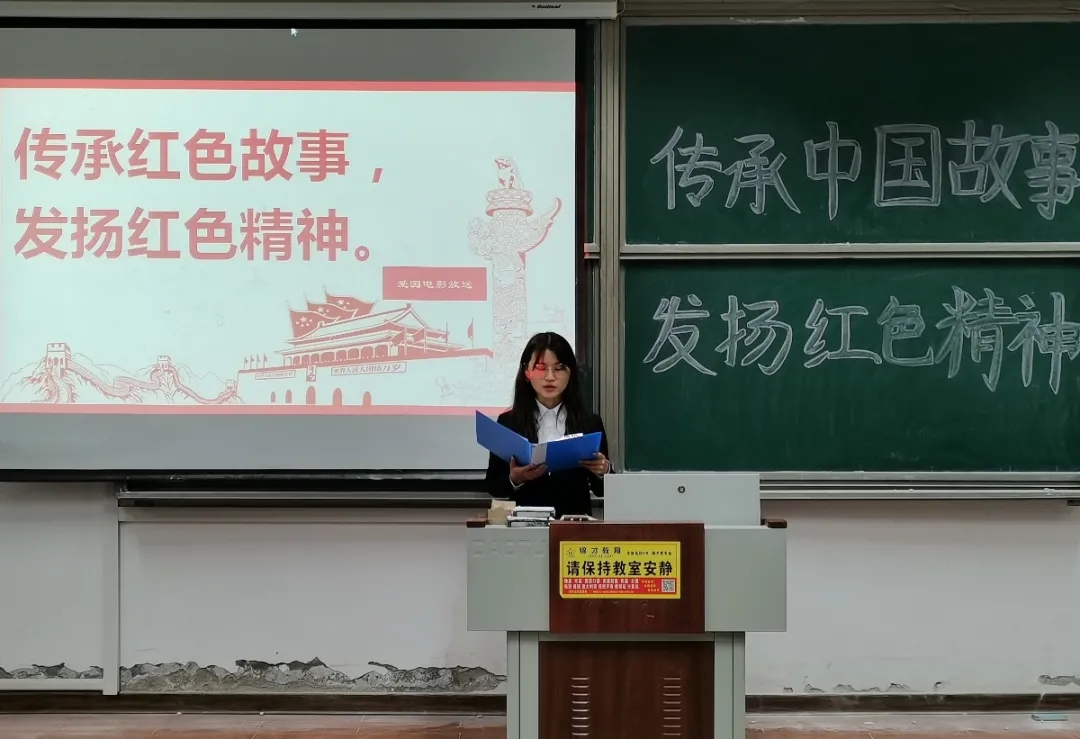 在明德楼214教室举办“传承红色故事,发扬红色精神”观看爱国红色电影活动。