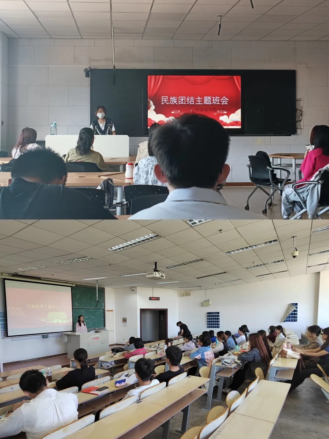各班开展了民族团结线下主题班会,并举行线上观影活动,组织各班同学观看爱国影片。