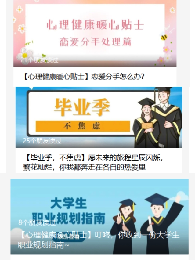 在青科外院之声微信公众平台相继推出“毕业季、不焦虑”、“大学生职业生涯规划”等一系列暖心贴士,对毕业生的毕业焦虑和就业择业等问题给予了及时的指导。