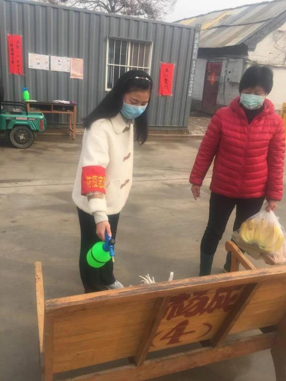 上岗后,杨隽瑶同学的第一个任务就是合理安排村民进行出入登记和酒精消毒,由于乡镇人口比较多,村民出入与外来人口接触频繁,消毒杀菌也便成了重中之重。由于乡基础设施不完善,加上疫情防控,许多集会取消,村民的生活物资储备也成了一大难题,协助村委会记录村民物资需求是杨隽瑶同学的第二个任务。除此之外,杨隽瑶同学也积极向村民宣传疫情防控的知识,引导村民不信谣,不传谣,安抚好村民的情绪,鼓励村民坚定信念,科学防控,众志成城,共克时艰。