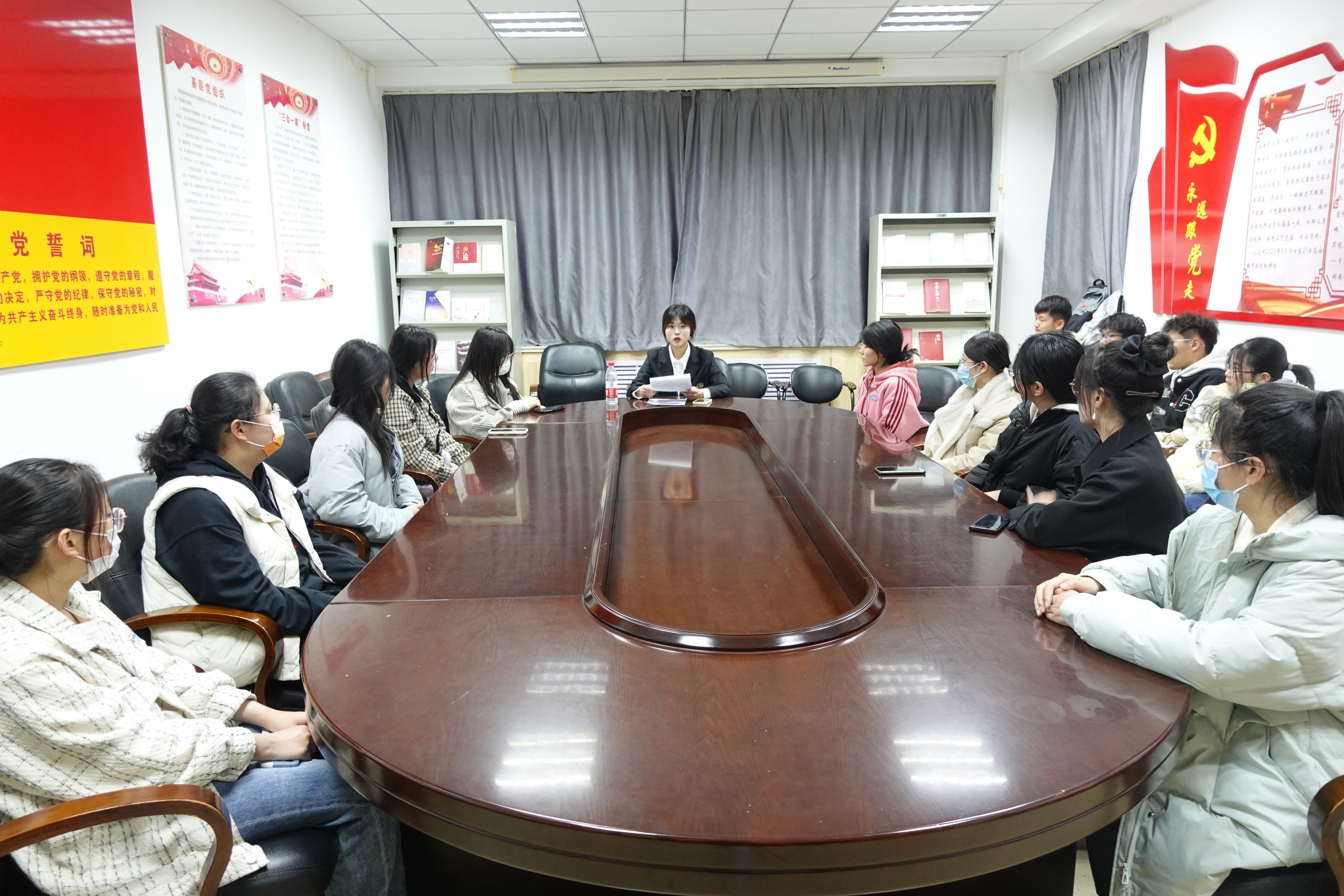 在502会议室举行沂蒙精神志愿服务分享会。