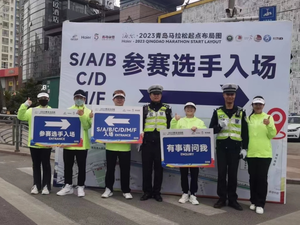 的志愿者也在自己的岗位上发光发热。早在出发前,学院进行了出征动员会,团委书记刘妍君老师叮嘱志愿者们注意保暖,注意人身财产安全等。带着学院的人文关怀,赛场上的外院志愿者用自己的热情诠释着“奉献、友爱、互助、进步”的志愿者精神,在一丝不苟的工作中体现出责任意识与奉献精神。他们用实际行动向来自全世界的跑者展现出青科志愿者的风采与素质,让“志愿者,找青科”的口号更加响亮。