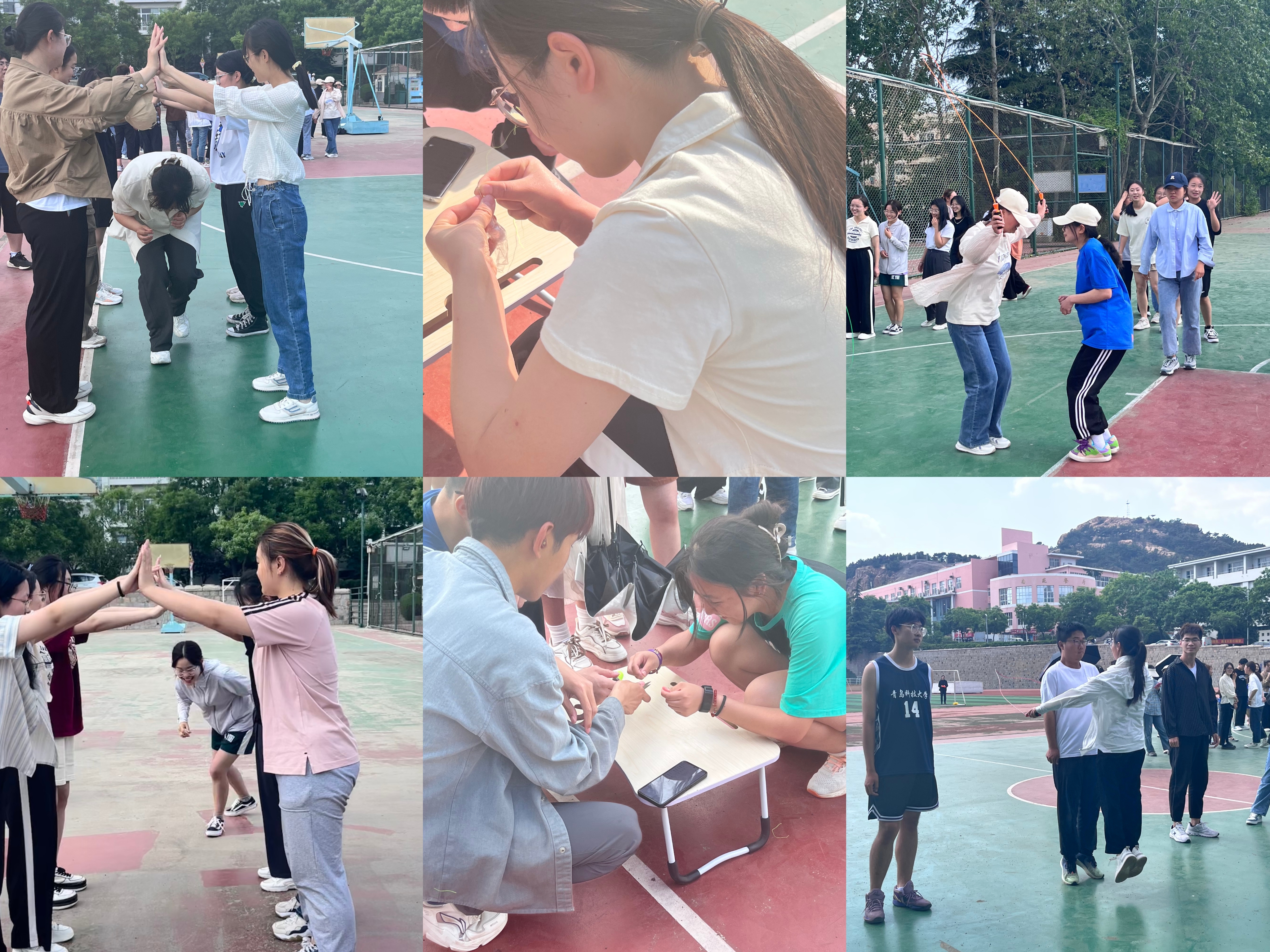 比赛共分为三项,分别是旅行跳绳、钻山洞和穿针引线。在简单的趣味游戏中,师生们团结一致,奋力拼搏,努力为集体争光。汗水洒在跑道,浇灌着成功的花朵开放;激情点燃希望,展现出不可磨灭的团结力量!