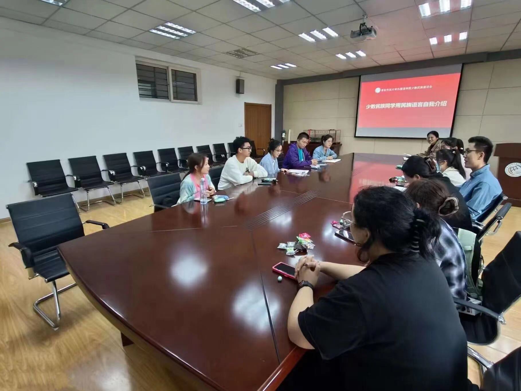 团委书记兼学工办主任刘妍君,辅导员张湘钧、马耀青、马昆老师以及各年级少数民族学生参加本次座谈会。