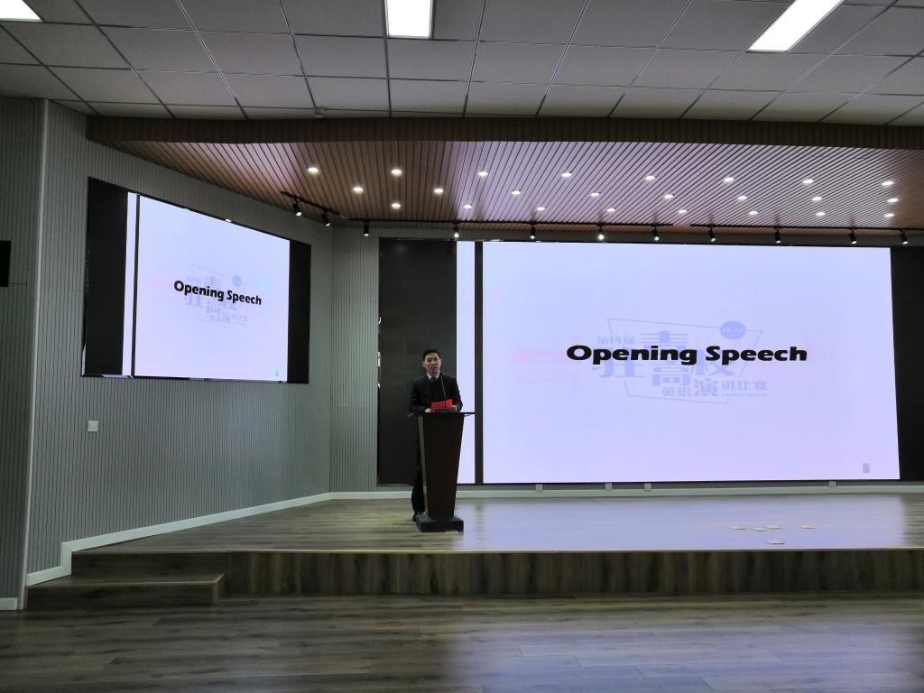 开幕式上,尹洪山对各驻青高校老师同学的到来表示热烈的欢迎,他指出,随着全球化的迅猛发展,学好英语就如同打开了一扇通往世界的大门,英语能力已经成为大学生必备的技能之一。希望参赛选手充满自信,赛出风采,赛出水平;希望各位评委认真履职,公平公正,预祝演讲大赛圆满成功。